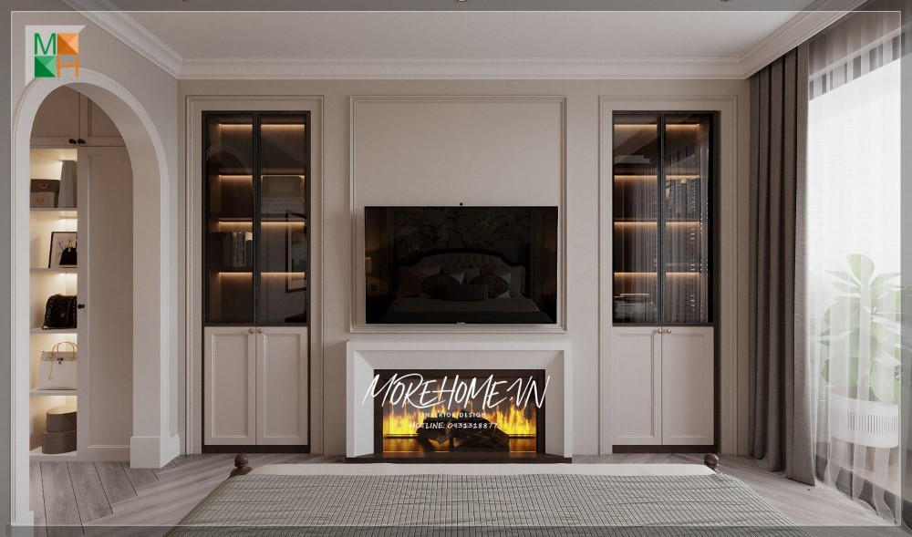 Kệ tủ gỗ tự nhiên cánh kính âm tường địa trung hải không gian gọn gàng ngăn nắp tính thẩm mỹ cao