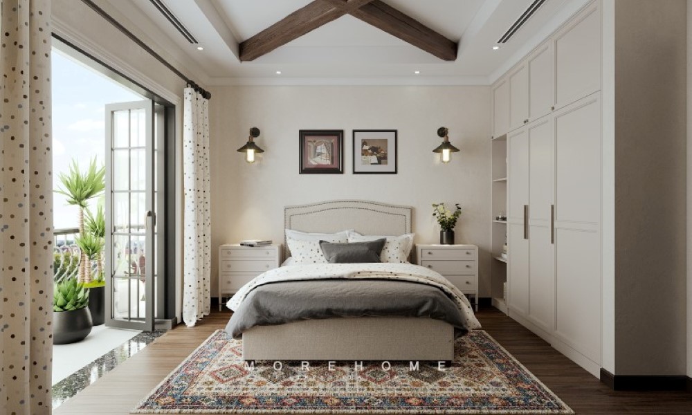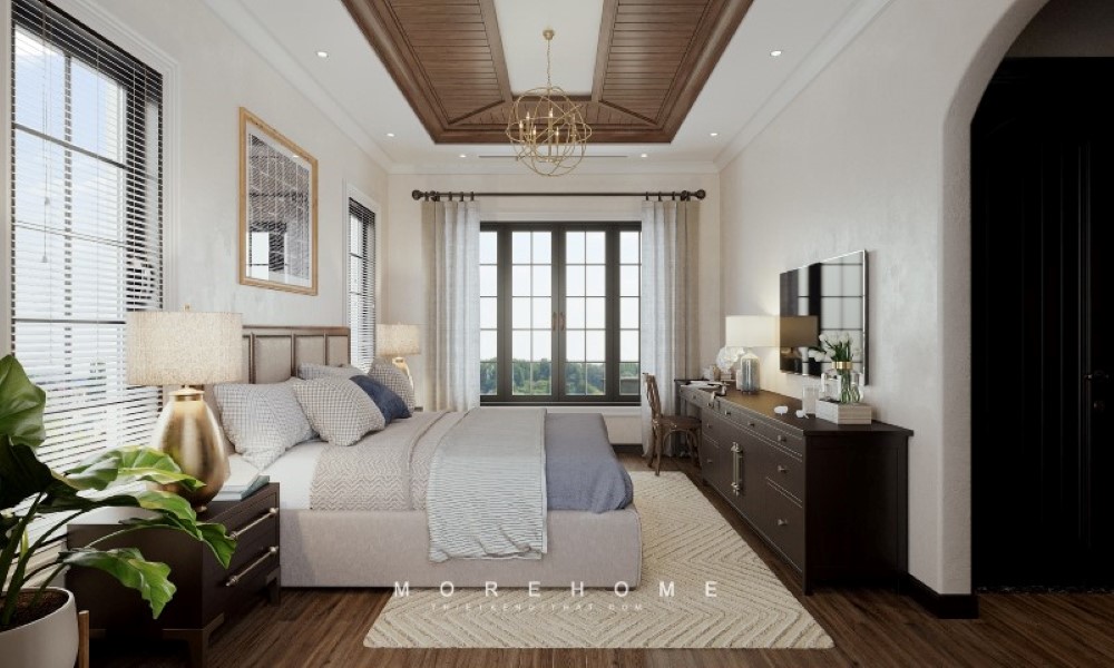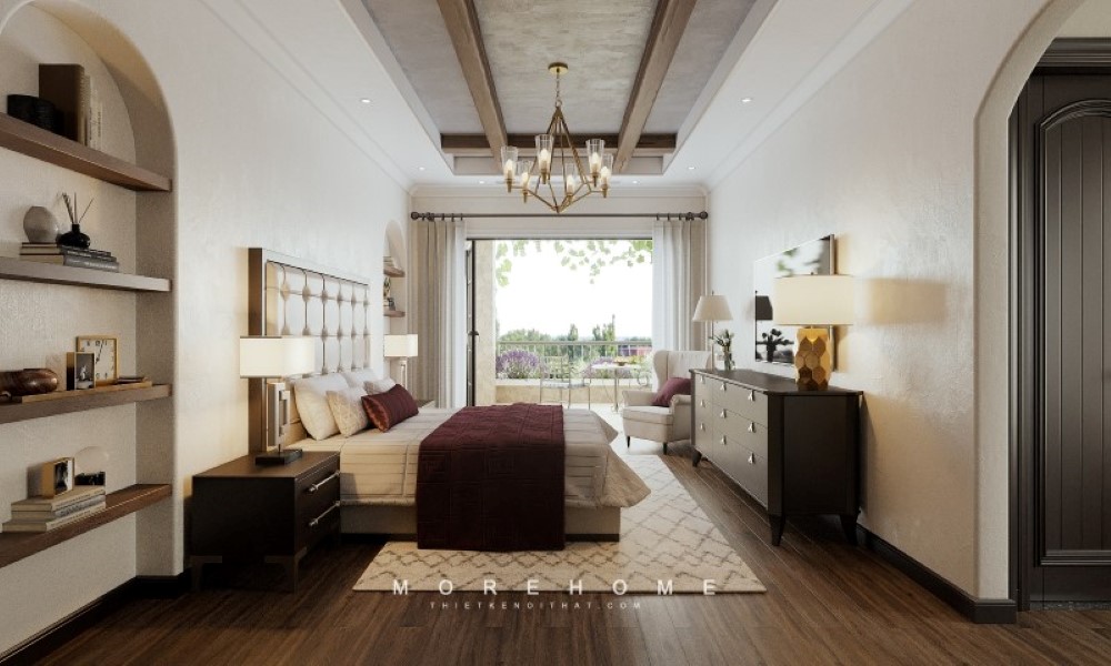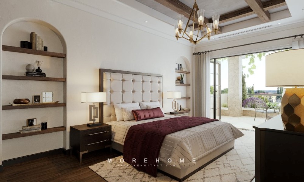 Giường ngủ bọc nệm màu trắng địa trung hải nội thất quan trọng trong không gian nơi nghỉ ngơi thư giãn sau một ngày dài học tập và làm việc