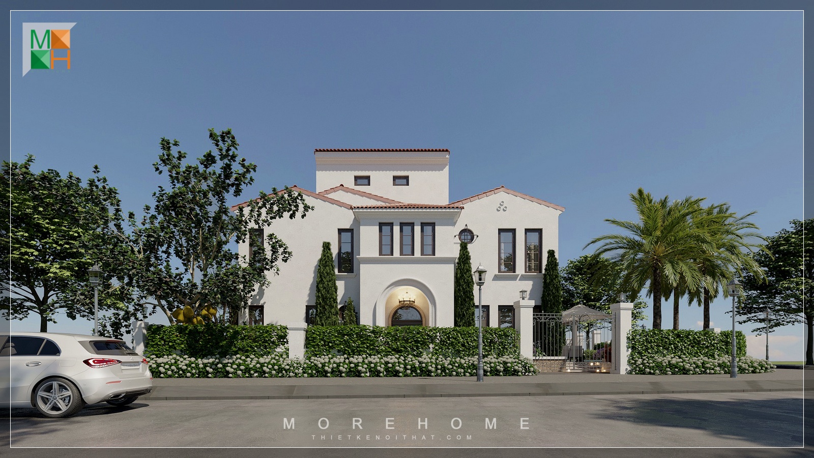 Thiết kế biệt thự 3 tầng phong cách địa trung hải màu sắc chất liệu tối giản những mang lại cảm giác rộng rãi thoải mái tạo sự dễ chịu và thẩm mỹ cao cho không gian