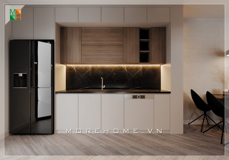 Thiết kế nội thất phòng bếp chung cư hiện đại, đơn giản và tiện nghi