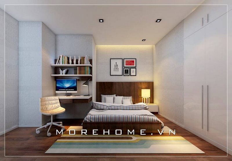 Mẫu giường ngủ gỗ công nghiệp với gam màu nâu trầm ấm áp, sang trọng tại phòng ngủ bé trai