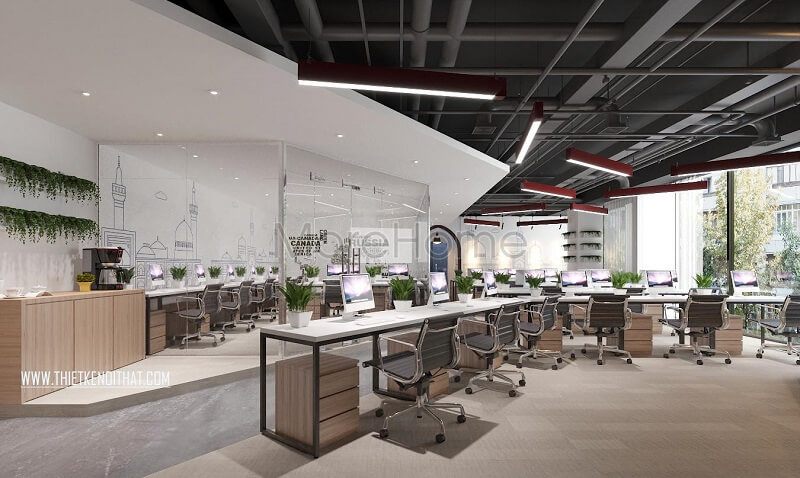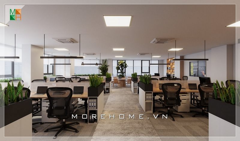 Nội thất văn phòng được thiết kế theo phong cách hiện đại, trẻ trung và chuyên nghiệp.