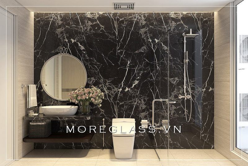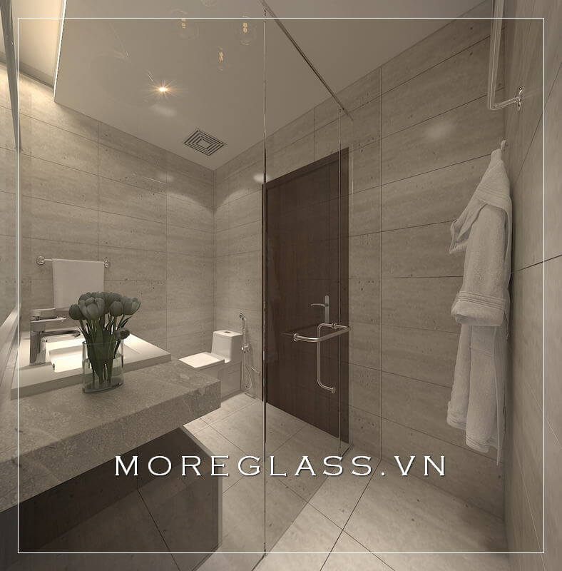 Vách kính cao cấp giúp tách biệt khu vực vệ sinh và phòng tắm đứng.
